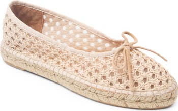 Espadrille-inspired trim adds an earthy element to a perforated leather ballet flat handcrafted in Spain by expert artisans.