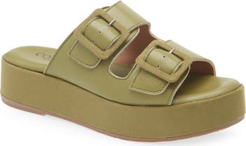 Wide, buckled leather straps stand out at the upper of an Italian-made slide sandal furnished with a cushioned footbed and lofted by a chunky flatform sole.