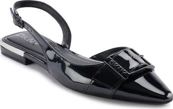 A pointy toe, slingback strap and glossy patent finish make this flat an optimal choice for the office and beyond.