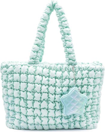 Soft, cushy quilting and long shoulder straps top a spacious tote bag designed with a star-shaped pouch to help your kiddo organize their daily essentials.