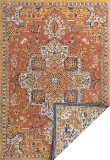 With its vintage-inspired, Bohemian design this rug will add bold pattern to your porch or deck. The reversible design and unique colorway updates the traditional medallion pattern. Family-friendly polypropylene is perfect for a dining room, living room, or entry too.