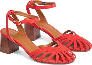 A slender ankle strap and artfully cutout upper emphasize the vintage inspiration of this d'Orsay sandal lifted by a softly flared block heel.
