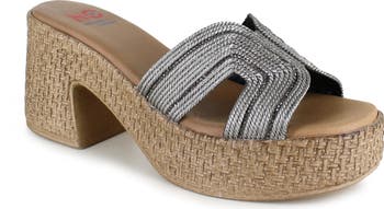 Stay stylish on sunny days in the cabana or at the resort in this chic platform sandal designed with a metallic-woven upper and jute-wrapped midsole.