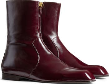Khaite's timeless aesthetic is evident in this glossy calfskin-leather bootie with a minimal heel and a subtly rounded pointed toe.
