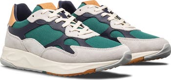 A mesh upper is overlaid with a layered leather and suede framework that adds structure to this airy, breathable sneaker set on the brand's Desert Track sole with a mix of treads inspired by various desert landscapes.