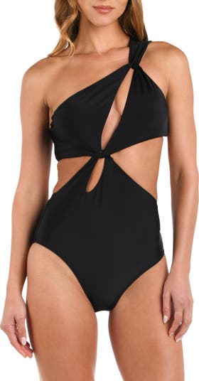 This shaping one-piece swimsuit has a bold, one-shoulder silhouette and welcomes the sunlight with flirty slashes and cutouts.