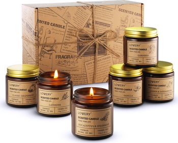 6 Pack Amber Scented Candles – Whether it's Me-time relaxing with a book or a luxurious bath, discover the art of light and scent with our candle and reward your ritual. This luxury candle set includes 6 x 100g Scented Candles in Classic Grapefruit, Lavender, Eucalyptus and Spearmint, Vanilla, Gardenia, Amber and Sandalwood, wrapped in an elegant gift box with ribbon and bow.