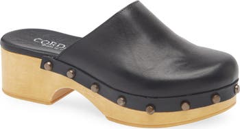 Antique studs trim the midsole creating a retro aesthetic on an Italian-made mule shaped from rich leather and lifted by a faux-wood platform and chunky heel.