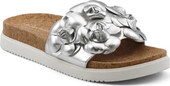 A florid flourish puts one more definition of spring into your step wearing this flatform slide sandal featuring a cork footbed and slip-resistant rubber sole.
