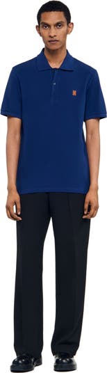 Short-sleeved cotton piqué polo shirt with polo collar and leather 4S patch on the chest.