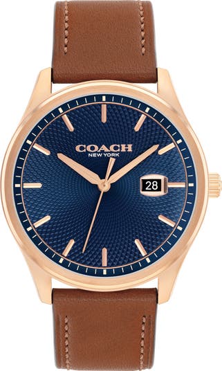 Movement: Three-hand quartz movement. Quartz movement: powered by a battery and features an internal electrical circuit to control the rate of the watch's ticking.
