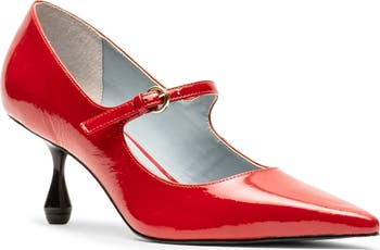 Patent leather with a crinkled finish heightens the everyday glamour of this pointy-toe pump.