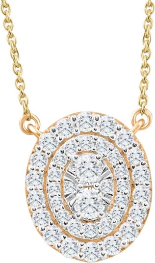 This women's pendant features 40 round brilliant cut lab grown diamond. All diamonds are prong set in solid 10k yellow gold. An 18" 10k yellow gold chain is included. The pendant measures 12mm wide.