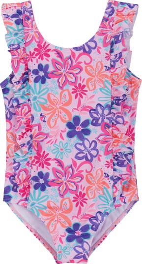 Ribbed and ruffled, this one-piece swimsuit offers a supersweet beach-day look as they splash and play in the sunshine.