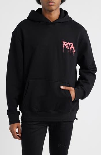 Graffiti graphics make a sharp statement on this oversized cotton hoodie designed with a drawcord hem and street-ready proportions that lean fully into urban expression.