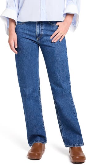 Nonstretch cotton denim brings authentic structure to these high-waist jeans in a timeless straight-leg silhouette. Designed with classic five-pocket styling, they offer a clean, versatile look with everyday appeal.