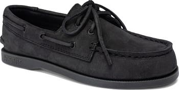 Traditional detailing makes an easy favorite of a kid-sized boat shoe made from premium leather with rawhide laces and signature wave-siped tread.