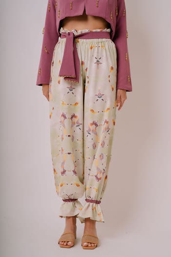 Elevate your style with these luxurious pants, meticulously designed to blend comfort and elegance. Adorned with our exclusive Camellia print, these versatile trousers offer an effortless transition from sophisticated to casual. Whether worn in an elegant palazzo silhouette or styled with cinched ankles for a jogger-inspired look, they are the epitome of adaptability. Tailored for the modern woman, these pants are not just a clothing item, but a statement piece that beautifully complements any wardrobe. Crafted for the discerning female form, these adjustable pants are the perfect blend of high fashion and everyday practicality. Transform your outfit for any occasion with ease, making them a must-have staple for the stylish woman. Experience unmatched comfort without compromising on style, making every moment an opportunity to impress.