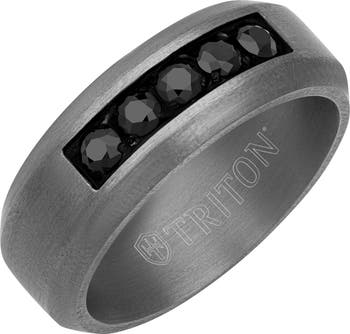 This ring is available in Tantalum with Black Heat-Treated Sapphires. 5 Channel Set Sahhphire totaling 0.875 total weight. Our Comfort Fit rings have a rounded interior specifically designed for the most comfortable all-day wear. Due to the intrinsic nature of the meteorite material we suggest wearing these rings with care. Do not wear your ring in the shower, pool, ocean, etc. and remove when washing hands. When not wearing please store in a dry/cool place. Scratch resistant. Hypoallergenic (Perfect For Those With Sensitive Skin). Polished Finish.