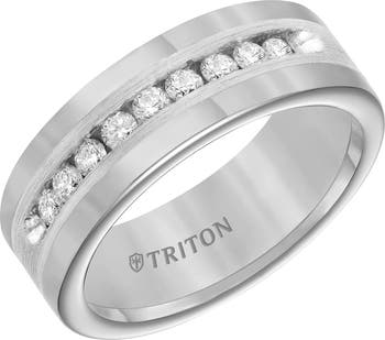 Comfort Fit rings have a rounded interior specifically designed for the most comfortable all-day wear. The power of Tungsten Carbide with the enduring luster of diamonds 9 channel set round diamonds with a total carat weight of 0.54 Scratch Resistant