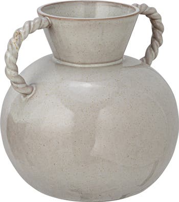 - This stunning vase with twisted handles is crafted from durable stoneware in beautiful cream color with a reactive glaze, resulting in a unique and eye-catching finish