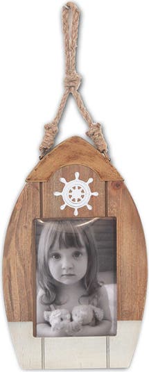 Commemorate a special occasion or give someone a gift they'll treasure with this boat shaped hanging wood frame. You can choose a photo from the family day on the boat or dress up your favorite nautical scene. Either way, this frame gives your picture a unique personal touch.