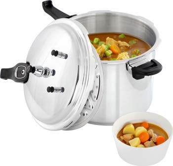 Experience faster, safer, and more efficient cooking with the MegaChef 9.5 Quart Induction and Stovetop Pressure Cooker with Steamer Rack. Designed for versatility and performance, this durable 9-liter (9.5-quart) cooker is perfect for home chefs who need both capacity and convenience. Whether you're preparing family meals, preserving seasonal produce, or steaming healthy dishes, the MegaChef has you covered. The heavy-duty induction bottom ensures rapid, even heat distribution and is fully compatible with all stovetops, including gas, electric, ceramic, and induction. With a working pressure range of 80-100 kPa, this pressure cooker drastically reduces cooking times while locking in flavor and nutrients. For added peace of mind, it features a safety pressure threshold of 100-160 kPa, along with multiple built-in safety mechanisms to prevent overpressure. An included steamer rack expands your cooking options, allowing you to steam vegetables, seafood, and more with ease. From hearty stews to delicate dumplings, the MegaChef delivers consistently excellent results. Built to handle everyday cooking, this pressure cooker is a reliable, all-in-one kitchen essential that saves time without sacrificing quality.