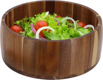 The MegaChef 9.75 Inch Acacia Wood Salad Bowl set brings natural beauty and functionality to your dining experience. Crafted from high-quality acacia wood, this elegantly designed bowl showcases the wood's rich, natural grain, making each piece unique. The compact yet spacious size is perfect for tossing and serving fresh salads, pasta dishes, or fruit. The smooth, deep design keeps ingredients neatly contained, ensuring a mess-free and stylish presentation for everyday meals or special gatherings. Built for durability and ease of use, this salad bowl set is a must-have for any kitchen. The sturdy acacia wood construction ensures long-lasting performance, while the smooth finish provides a comfortable grip for effortless serving. The smooth surface is gentle on utensils and easy to maintain-simply hand wash and occasionally treat with mineral oil to preserve its natural beauty. Whether you're hosting a dinner party or preparing a casual family meal, the MegaChef 9.75 Inch Acacia Wood Salad Bowl offers the perfect blend of elegance and practicality.