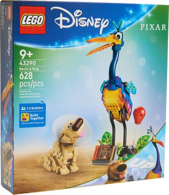 Create two cool characters from the Pixar movie UP that can be posed and you can tell fun stories with them or display them. This buildable set features Kevin the bird and Dug the dog and also has a stand with movable leaves and space for the My Adventure Book, a red balloon, Doug's cone of shame and more. The characters can inspire imaginative play or make a creative display on a shelf or desk. This kids’ building toy makes a cool Disney gift-giving idea for families, birthdays and holidays.