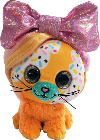 Little Bow Pets Large are best friend for your child that comes with amazing and adorable surprises! They are irresistible with they're varied colorful patterns, glittery bows, and big round sparkling eyes. Discover little gifts hidden within the the bows, one on each side of the center knot. Open up the bow and discover fun toys and accessories for styling your pet's hair. A feature often not found on many stuffed animals is they long locks of all of the Little Bow Pets. Each has a unique coloring and is soft and style-able. Brush, braid, or barrette to your heart's content; or even have them match your hair style! Pick your favorite color and pattern for the pet of your dreams. They are massively collectible and all come with unique mystery toys to find in their bows. Trade bows with each pet or your friend's pets, trade accessories or toys for maximum fun. Little Bows Pets with big surprises, find them all!