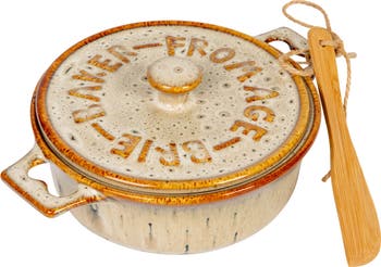 - Bake and serve delicious brie cheese with this set of two stoneware brie bakers with reactive glaze designs in varied brown and tan colors, creating a rustic and cozy look