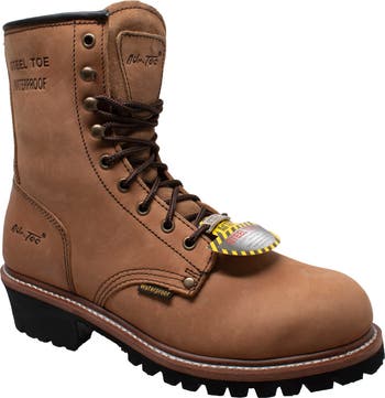 This 9 inch waterproof logger boot has a steel toe has rubber outsole for dependable traction. It's made with goodyear welt construction and brown leather so it's durable and ready for any job. One of our best selling logger boots!