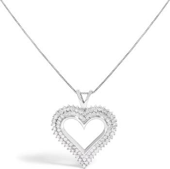 .925 Sterling Silver 1.0 Ctwt Diamond Open Heart Pendant Necklace