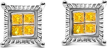 .925 Sterling Silver 1/2 Cttw Yellow Princess Diamond Quad Stud Earring