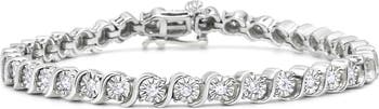 .925 Sterling Silver 1/4 Cttw Diamond Miracle Plate and "S" Link Tennis Bracelet
