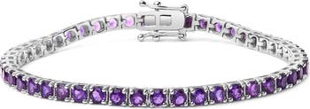 .925 Sterling Silver 7 3/8 Ctw Created Purple Amethyst Tennis Bracelet