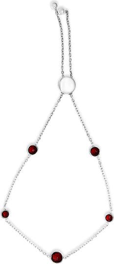 Haus of Brilliance .925 Sterling Silver Bezel Set Red Garnet 5 Station Adjustable Bolo Bracelet, Main, color, White