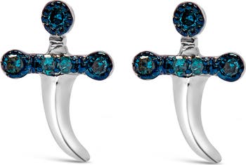 .925 Sterling Silver Blue Diamond Accent Knife Earrings