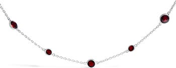 .925 Sterling Silver Checkerboard Cut Red Garnet Bezel Station Necklace