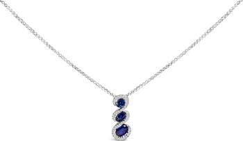 Delicately crafted from lustrous .925 sterling silver, this exquisite pendant necklace introduces an ethereal realm of beauty into any ensemble. Its 18-inch festooned cable chain gently cascades down, secured effortlessly by a reliable lobster claw clasp. At the heart of this masterpiece, three lab-created oval blue sapphires emerge as celestial bodies, each enveloped by the radiant embrace of twinkling round white sapphires. These gems are meticulously positioned in a shared prong setting, creating a mesmerizing swirl that evokes the majesty of the cosmos. With no treatment to alter their pristine clarity, these sapphires not only promise a legacy of durability but also an unwavering bond with the wonders of the created universe, making this necklace not just an ornament but a bearer of stories and dreams.