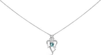 This exquisite angel pendant necklace, expertly crafted from .925 sterling silver, captures the essence of ethereal beauty and timeless elegance. At its heart, a lab-created blue topaz, shaped like a pristine heart and treated to enhance its mesmerizing azure hue, gleams from a secure three-prong setting. Surrounding it, natural white sapphires, each placed with precision in a shared prong setting, mimic the stars in the night sky, adding a celestial sparkle to the angelic figure. Attached to an 18-inch festooned cable chain with a sturdy lobster claw clasp, this piece is not only a stunner but promises enduring security and comfort. Perfect for those who cherish angelic symbolism or seek a touch of divine grace in their accessories, it is a beacon of craftsmanship and style.