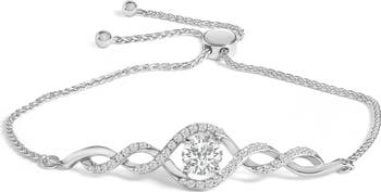 .925 Sterling Silver Created White Sapphire Knotted Twist Bolo Bracelet