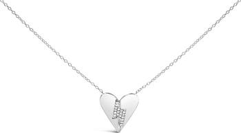 .925 Sterling Silver Diamond Broken Heart Pendant Necklace