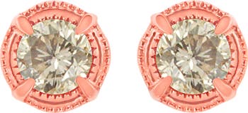 Elegant and timeless, these tarnish resistant 92.5 percent sterling silver stud earrings showcase a pair of round brilliant diamonds with a combined one carat total weight. The diamonds are K L in color with a natural brownish hue and I2 I3 clarity, so you can expect visible inclusions that give each stone its own character. Each diamond sits at the center of a raised double ring of delicate milgrain detailing that adds soft texture and vintage inspired charm. The earrings are finished with a high polish shine and are set on ultra secure threaded posts with screw backs for comfortable all day wear. Beautiful for everyday sparkle or a thoughtful gift, these studs are easy to pair with your favorite diamond pieces and bring a classic, feminine touch to any look.