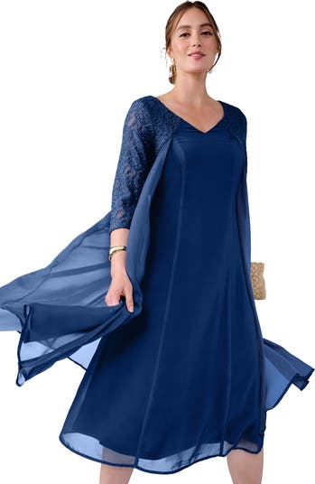 Prepare to be the best-dressed guest at any event in Jessica London’s elegant plus-size women’s georgette overlay dress. The semi-attached overlay adds dramatic flair, while the classic A-line silhouette is effortlessly flattering. Dazzling accessories complete the look perfectly.