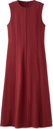 Vertical panel seaming shapes this A-line midi dress designed with a jewel neckline and a gently flared skirt.
