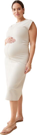 A stretchy ponte knit keeps you and your baby bump comfortable in an elegant everyday dress that's gathered softly at the waist and finished with an A-line skirt.