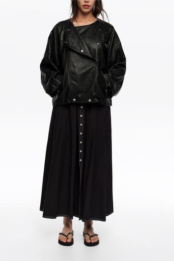This midi skirt features an A-line cut with a flare, made from 100% cotton for comfort. It includes side patch pockets, a contrast elasticated waistband, and a row of buttons on the front for added detail.