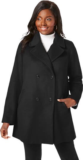 - Design: The double-breasted front is a classic and timeless feature of peacoats, while the notch collar adds a touch of elegance and femininity to the coat's design. It can be worn open or closed to suit your style and the weather. Relaxed silhouette with pockets and an inverted back pleat.