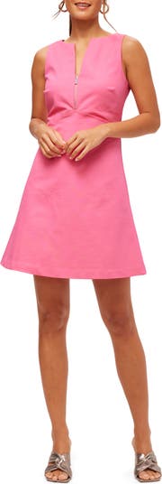 Half zip A line dress in a polished suiting fabric with flattering waist seaming detail